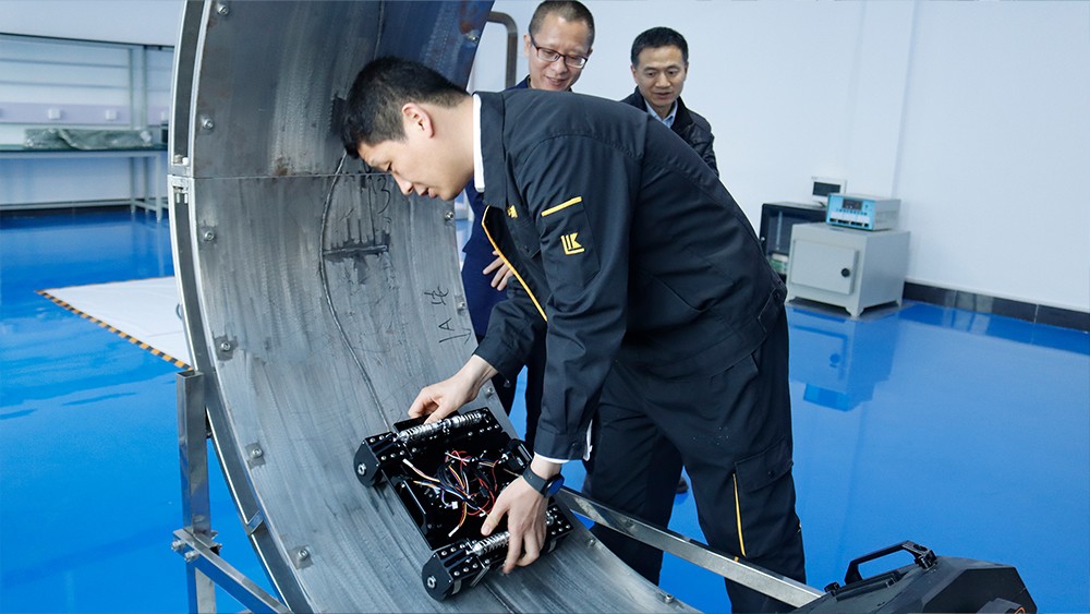 2024年4月17日-18日,上海材料研究所有限公司無損檢測事業(yè)部蔣建生主任、王森副主任,銷售市場部滕健主任一行受邀蒞臨我司考察指導,先后參觀了我公司埋地管道實訓基地、無塵車間、研發(fā)中心實驗室等,對我公司自主研發(fā)的無線式磁粉探傷儀、管道磁粉探傷儀、角焊縫磁粉探傷儀、腐蝕測厚機器人、ACFM交流電磁場檢測儀等設備進行性能測試,均達到預期效果,對我公司研發(fā)、生產及售后能力給予高度評價。