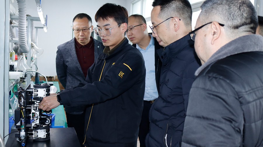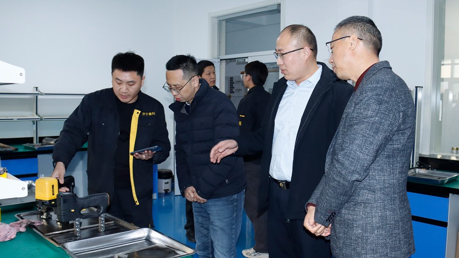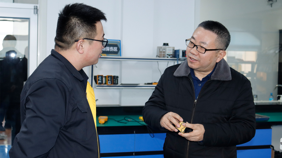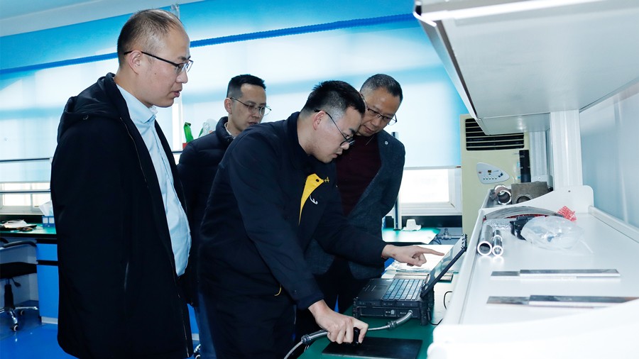 2024年1月10日,廣東省特種設(shè)備檢測研究院順德檢測院一行蒞臨我司參觀指導(dǎo),先后參觀了我公司無塵車間、實驗室等,對我公司自主研發(fā)的無線式磁粉探傷儀、管道磁粉探傷儀、角焊縫磁粉探傷儀、腐蝕測厚機器人及聯(lián)合中國石油大學(xué)(華東)共同研發(fā)的ACFM交流電磁場檢測儀等設(shè)備進行性能測試,均達到預(yù)期效果,并對我公司研發(fā)、生產(chǎn)及售后能力給予高度肯定。